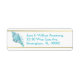 Beach theme wedding address labels done in white with gold stripes on the upper and lower sides. Graphics of a turquoise blue conch shell, decorates the far left side of the label. Personalise the text with your information. Matching wedding products are available.