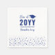 This modern royal blue graduation party paper napkin features typography "Class of 20YY(Your graduation year)" and a graduation cap graphic with a confetti background. You can customise the text (graduate's name, graduation year). More colour options and party supplies are available at my shop BaraBomDesign.