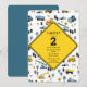 Blue, yellow and white themed Construction Trucks - Dump Truck, Excavator, Crane, Bulldozer, Road Roller, Concrete Truck, Front End Loader and Backhoe. Getting dirty with construction trucks is always fun. Perfect for heavy machinery enthusiasts. The perfect birthday invitation! Matching birthday party décor and favour can be viewed in this design's collection.