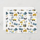Blue Construction Trucks & Site Theme Pattern Holiday Postcard