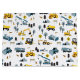 Blue, yellow and white themed Construction Trucks - Dump Truck, Excavator, Crane, Bulldozer, Road Roller, Concrete Truck, Front End Loader and Backhoe. Getting dirty with construction trucks is always fun. Perfect for heavy machinery enthusiasts. The perfect gift ideal for a Christmas present, birthday gift, nursery decor or home decor.