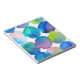 A colourful watercolour abstract art painting with cool blue, purple green round circles in a pattern design to show the melding colour patterns.