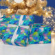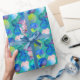 A colourful watercolour abstract art painting with cool blue, purple green round circles in a pattern design to show the melding colour patterns.