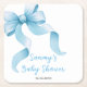 Blue Coquette Bow Baby Shower Square Paper Coaster