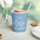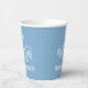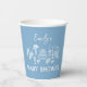A dusty blue Coquette Modern Hand Drawn Baby Shower party decor paper cup design typically blends whimsical, playful elements with a contemporary aesthetic. The size is a standard and popular choice, however other formats are available.