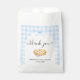 This charming baby shower favor bag features a sweet apple pie design framed by a soft blue gingham border, accented with delicate white flowers and a coquette-style ribbon bow. Elegant script typography adds a heartfelt touch, making it perfect for presenting treats, baked goods, or small gifts for guests. Designed to coordinate seamlessly with a Cutie Pie–themed baby shower collection, this favor bag adds a polished and cohesive finishing detail to your celebration. The soft pastel color palette creates a warm, timeless look suitable for any season, while the customizable text allows you to personalize it with the guest of honor’s name and event date.
