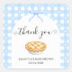 This adorable baby shower thank you sticker features a charming apple pie design set against a soft blue gingham background, accented with delicate white flowers and a sweet coquette-style ribbon bow. Designed to coordinate with a Cutie Pie–themed baby shower, this sticker is perfect for sealing favor bags, treat boxes, envelopes, or party favors. Elegant script typography adds a heartfelt touch, while the soft pastel palette creates a cohesive and charming finishing detail for your celebration. Fully customizable text allows you to personalize it with the guest of honor’s name and event date.