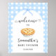 This adorable baby shower welcome sign features a charming apple pie illustration centered within a soft blue gingham background, accented by delicate white flowers and a sweet coquette-style ribbon bow. Designed to coordinate with a Cutie Pie–themed baby shower, elegant script typography warmly welcomes guests while highlighting the mom-to-be’s name for a cozy and inviting first impression. Perfect for entryway displays, dessert tables, or photo backdrops, this sign complements pie-themed and coquette-style celebrations beautifully. The gentle pastel color palette offers a timeless, versatile look suitable for any season, and the customizable text allows you to personalize it effortlessly for your special event.