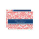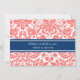 Custom rehearsal dinner party invitations in modern and elegant dark navy blue, peach orange pink and white chic and classic floral damask vintage pattern. Personalise the text to create a unique invitation for your wedding rehearsal dinner. Contact us to request a colour change. Available in many matching wedding products.