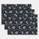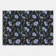 Blue Cornflower Pattern Black Background Wrapping Paper Sheet