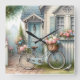 Blue Cottage Bike with Spring Flower Basket Square Wall Clock