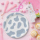 Blue Cow Print Little Cowboy Baby Shower Paper Plate