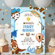 Blue Cowboy Boy First Rodeo Birthday Invitation, Wild West 1st Birthday Invite, Editable Cow Pattern Western Birthday Party