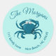 Cute blue crab personalised round return address labels. Customise with your last name and address.