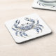 This hard plastic coaster is shown with a lovely floral print blue crab art print.