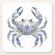 This paper coaster is shown with a lovely floral print blue crab art print.