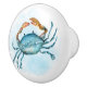 Add a coastal touch to your drawers or cabinets with this blue watercolor crab on a splash of ocean wave.