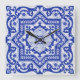 Blue Cracked Ceramic Style Azulejo Vintage Square Wall Clock