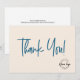 Personalise this simple and easy-to-use thank you postcard template with your company's logo, website, message, business name, website and social media handle (delete any icons not applicable using the 'customise further' button). Let your clients, customers, patrons know you are grateful for their support, personalise the thank you message as needed. Simple, chic, modern typography in blue on a cream background