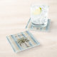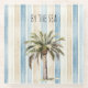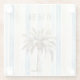 Blue Cream Stripes Tropical Palm Tree Glass Coaster