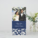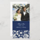 Wedding thank you photo cards in elegant and modern dark navy blue and off white with delicate floral damask pattern. A perfect way to thank friends and family for wedding gifts and to share your wedding photos. Available in matching postage, and many other products for your wedding.