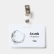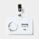 Blue Crescent Moon with White Flowers ID Badge