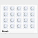 Stickers with a mystical illustration. A dark blue crescent moon with a elegant thin circle outline and white flower blossoms along its edges.