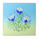 A ceramic tile with beautiful images of blue crocus flowers. The image and background can be personalised. Original artwork by W.B.