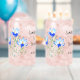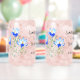 Can glasses with beautiful images of blue crocus flowers. The images, background and text can be personalised. Original artwork by W.B.