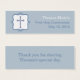 This classic first holy communion favour tag features a blue cross in a dark blue frame, all on a soft blue background . Customise this small tag with your personalised details in white and blue text. Other matching items available.
