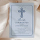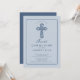 Invite family and friends to celebrate a sacred milestone with this elegant blue cross First Communion invitation. Featuring a refined leafy cross illustration, soft blue tones, and timeless typography, this design offers a beautiful balance of tradition and modern simplicity.
