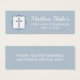 This classic first holy communion favour tag features a blue cross in a dark blue frame, all on a soft blue background . Customise this small tag with your personalised text in white.