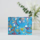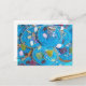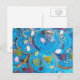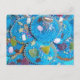 A pile of brightly coloured cupcakes decorated with marshmallows, chocolate stars, hearts, jelly sweets. sprinkles and glitter - ready to eat! Postcard with a blue, pink, yellow, green, red, white, brown and silver customisable design for you to personalise with your own text, pictures and ideas. Matching postage available. An original photograph stylised using digital techniques by Jess Perry.