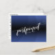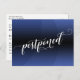 The background has been covered in a trio of blue curves with a subtle black ombre overlay. Using a pretty script font with swirls and waves, I created a graphic that reads "postponed". The reverse side includes template placeholders for your details with matching accents featuring the calligraphy font. Use these template fields to add your personal details and change my draught wording to suit your needs and situation. Other pieces are available in the set and I'm happy to create additional variations upon request. // 99 //