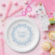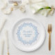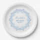 Blue Custom Monogram Simple Floral Elegant Paper Plate