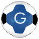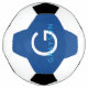 Soccer Ball Design in blue and cyan with your name and initial letter printed directly on the ball - colours and fonts are fully editable with your choice of colours, fonts, or layout, including adding a photo or team logo.