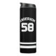 This thermal tumbler with a custom name and number would be a wonderful gift for any sports player and fan in the cold season! The bold stripe design with a large number will be sure to stand out on the field and sports court.