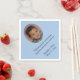 Add a personal touch to your child's first communion with these personalised photo napkins. Upload your favourite photo and create a customised message. To resize or reposition your photo, click on the Customise It button. The background is a light blue colour. I have this design in a variety of photo shapes and background colours, if you don't find what you're looking for just message me.
