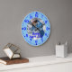 The clock has blue dots for the minutes and hours, and blue numbers, on a lighter blue background.