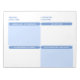 Simple, blue, minimalistic four-part MEETING NOTES notepad with CUSTOMIZABLE HEADINGS to facilitate note-taking at meetings and in lectures. Each section has a customisable heading: General Info/Key Takeaways; My Questions; Action Points by Others; My Action Points/Next Steps. The idea is to write your notes in the appropriate quadrant so you can quickly summarise the points of the meeting. You can tear off the sheets and distribute to other attendees or students. An ideal addition to your college or office stationery. Also in black/grey.