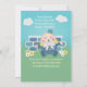 What a fun way to honour a mummy-to-be than to give her a baby shower with the theme of Humpty Dumpty. A classic, adorable and familiar Mother Goose nursery rhyme that we all love and adore. This design features a Humpty Dumpty character sitting on a short wall with flowers and grass. He has rosy cheeks and is wearing a suit with a big bow tie. The background has floating clouds. The colours are yellow, blue and green. Customise to make your own.