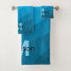Blue cyan gradient geometric mesh pattern Monogram Bath Towel Set