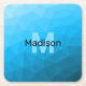 Blue cyan gradient geometric mesh pattern Monogram Square Paper Coaster