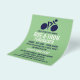 this is an excellent flyer, but if you are like me and thought the tear-off strips are already perforated then beware, they are not !! I had to go and buy a special tool for the job. Also the card I chose (can't remember selecting anything other than 'basic') is very thick, too thick for a standard flyer I would say. *NOTE order way in advance, takes ages to arrive. Great design, print colours are very similar to that shown on the computer, which is unusual in my experience, so this is a big bonus. This is the 3rd I've chosen from PetPro Designs and Dolores the designer is so helpful! I have now ordered more small flyers and some postcards.