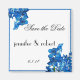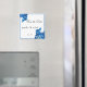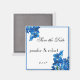 This fun Save the Date magnet is a great way to keep your wedding date on everyone's mind! The background is white with a blue border. In opposite corners there are blue orchid blooms. Your custom text is centred.