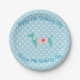 Adorable blue polka dots with soft pastel doxie party plate and customisable name.