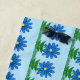 Pretty blue daisies with yellow centres. Enjoy the warm summer months at the beach and feel the ocean breeze laying on these pretty floral patterned beach towels in the sand. Love is written in yellow text. Original Art Design © TamiraZDesigns.