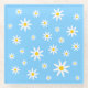 A pattern of white daisy flowers on blue.