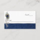 Elegant wedding reception place / escort card done in white, with a blue on blue damask pattern edged in silver running along the bottom front. Graphics of a silver tone flourish, on the left side, has a peacock feather and pearl decorations. Blue text, on the front, can be deleted if you want blank cards. Lovely addition to our Blue Damask and Peacock Feather Wedding invitation and products.