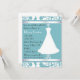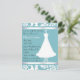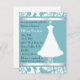 Pretty bridal shower invitation done in aquamarine and white, with a lovely wedding dress on a decorative stand. Customise the text to suit your party needs.